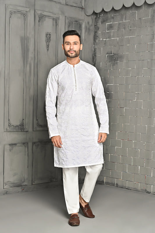 White Embroidered Kurta Trouser