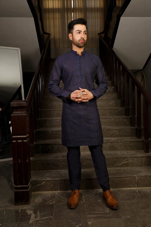 Blue Embroidered Kurta Trouser