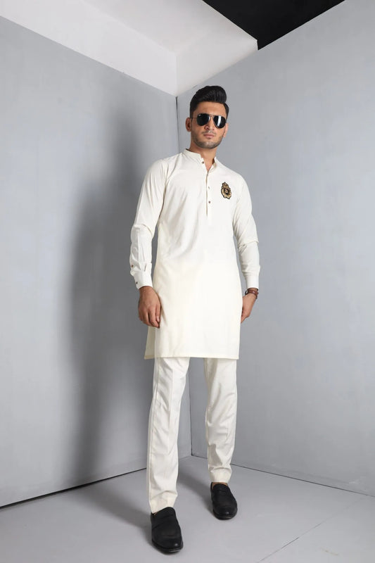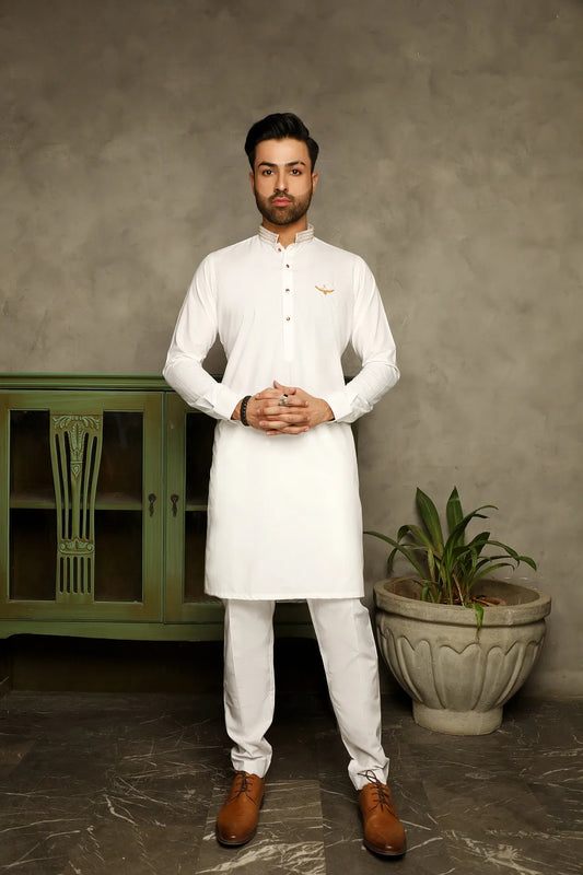 Mid Night Blue Button Pinned Collar Kurta Trouser