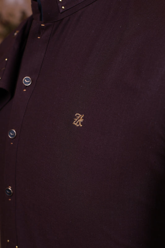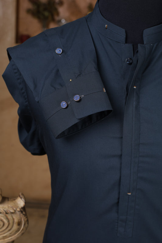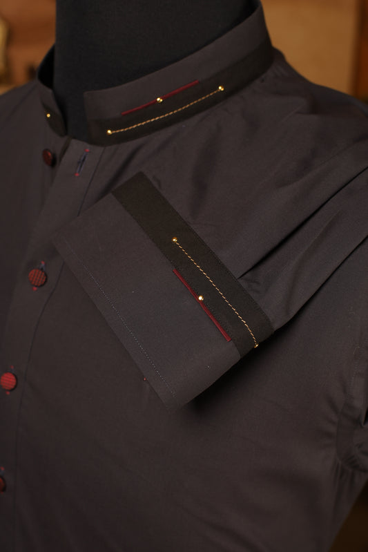 Charcoal Grey Mandarin Collar Kurta Trouser