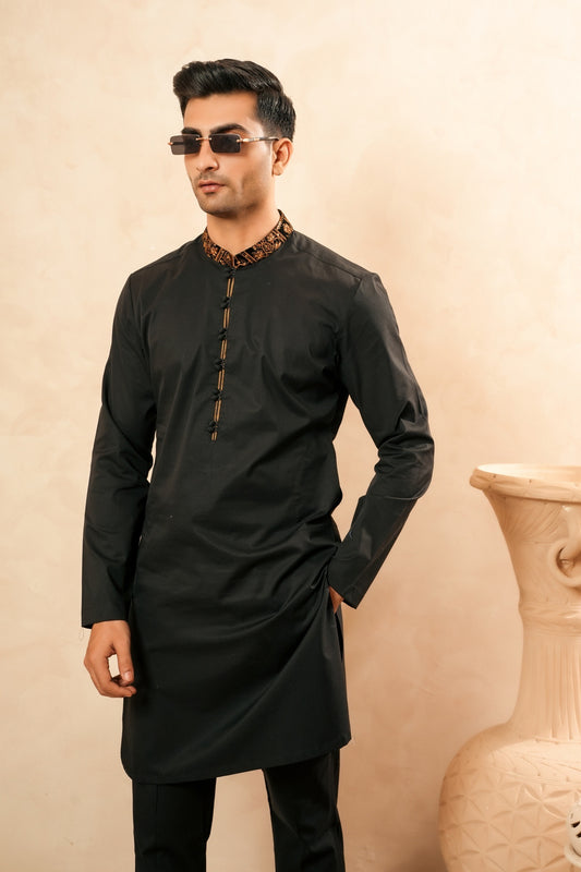 BLACK TEXTURED SHALWAR KAMEEZ