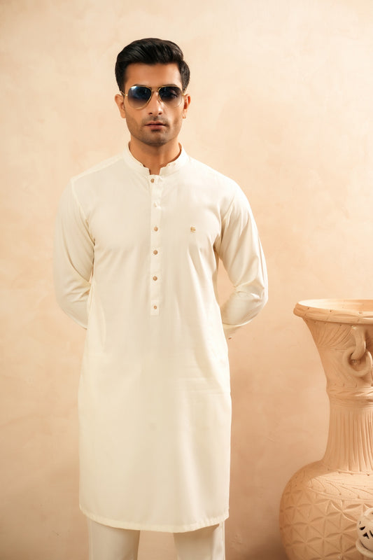 Cream White Mandarin Kurta Trouser