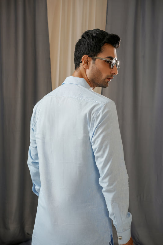 SKY BLUE LINEN CUBAN KURTA TROUSER