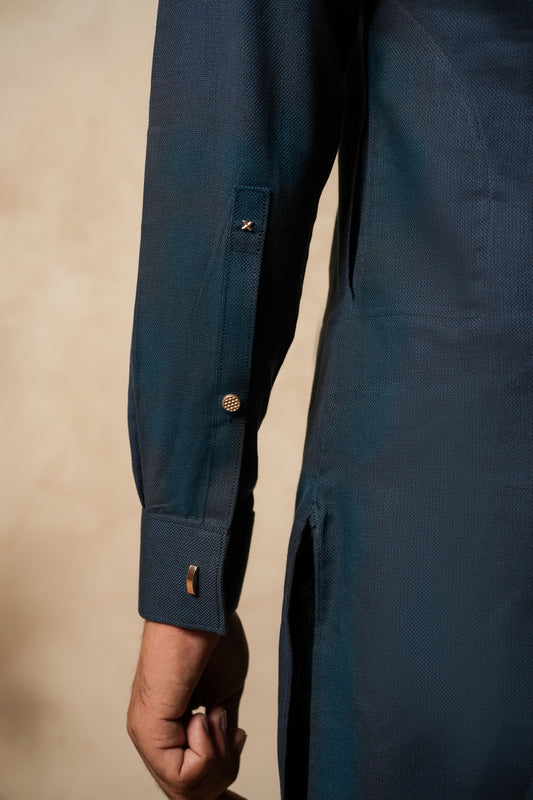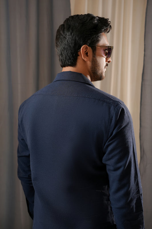 DARK BLUE LINEN CUBAN KURTA TROUSER