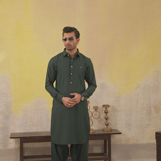 BOTTLE GREEN CLASSIC COLLAR SHALWAR KAMEEZ