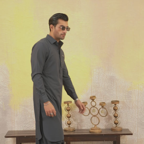 GREY CLASSIC COLLAR SHALWAR KAMEEZ
